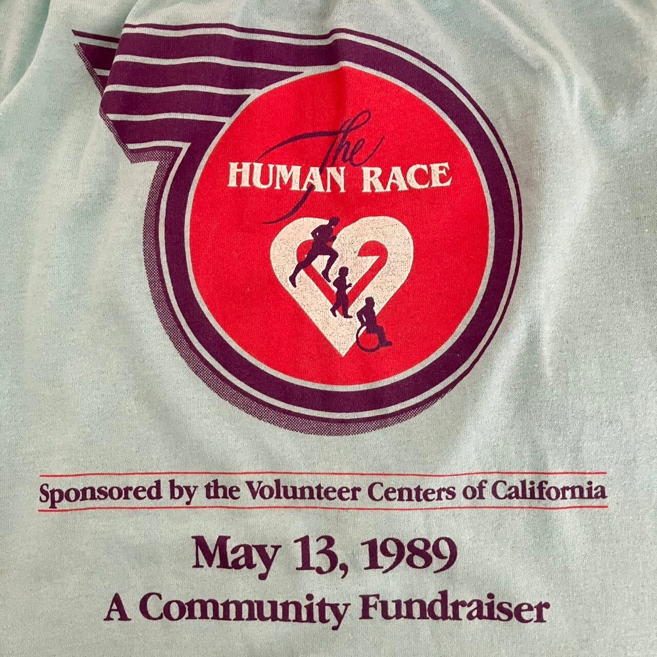 1989年、カリフォルニア州で開催されたチャリティイベント「Human Race」の記念Tシャツ。