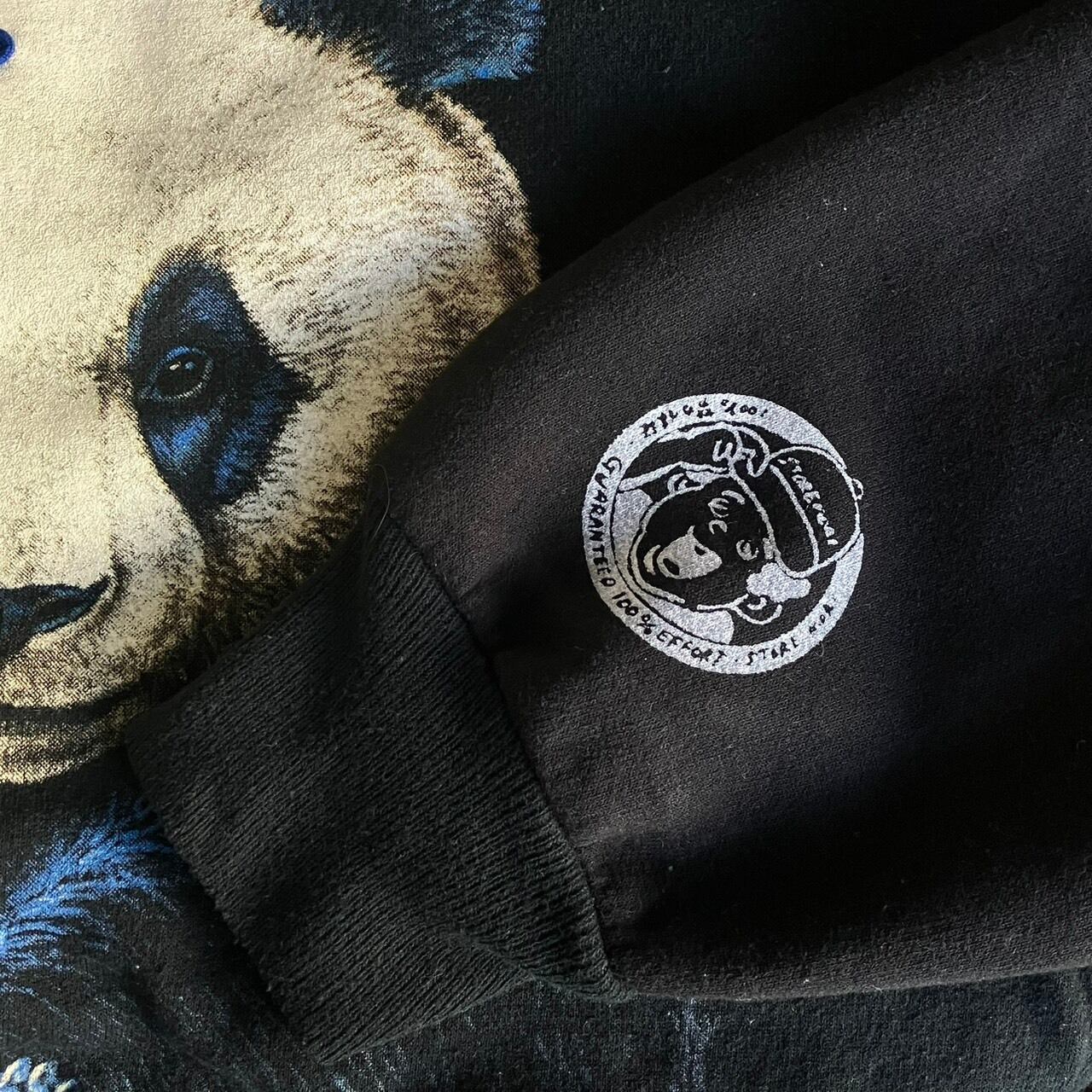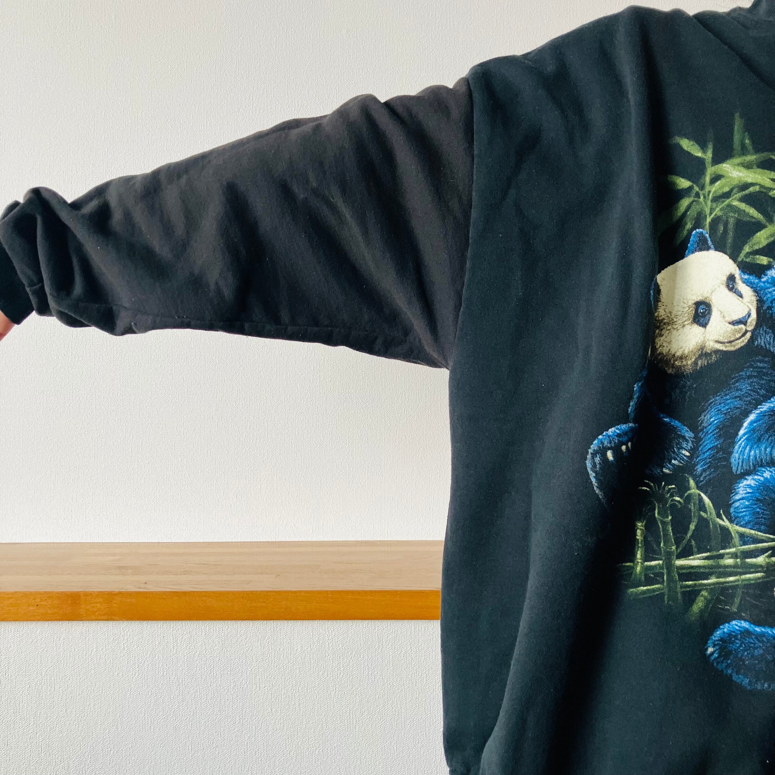 パンダの親子のデザインで、ブルーを効かせた毛並みの描写が細かく、アート感のあるプリントが映える1枚です。