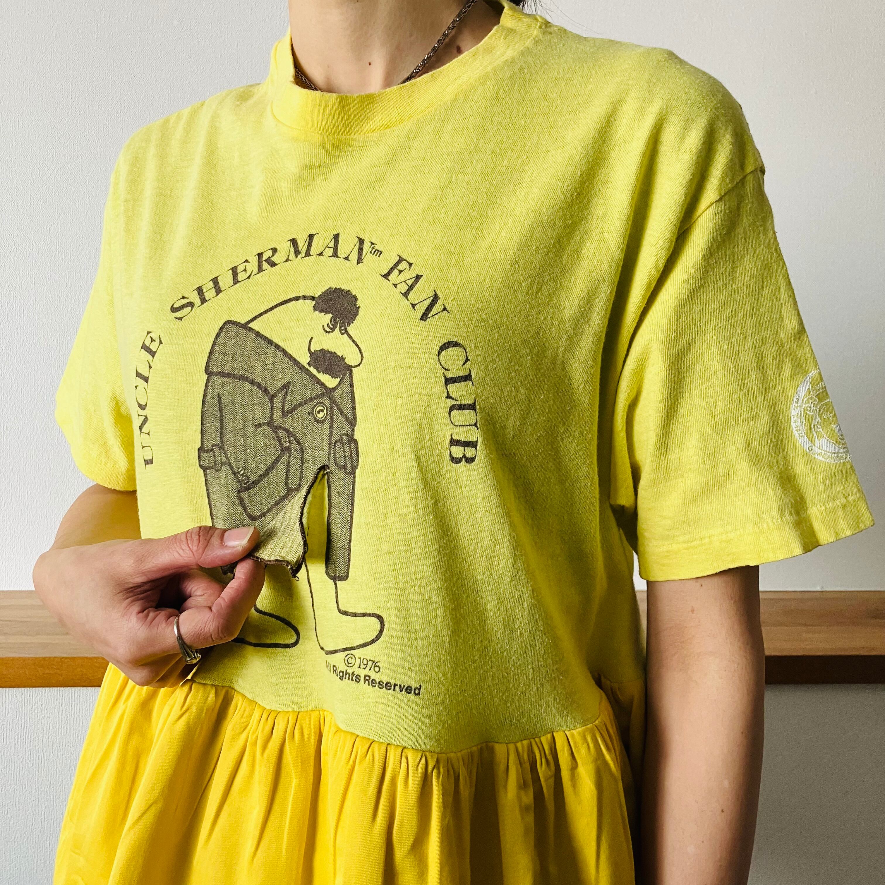 プリントには©1976表記が入り、当時のローカル制作らしい空気感も魅力。薄手で柔らかく、デザインと時代性を楽しめる古着らしい一着です。