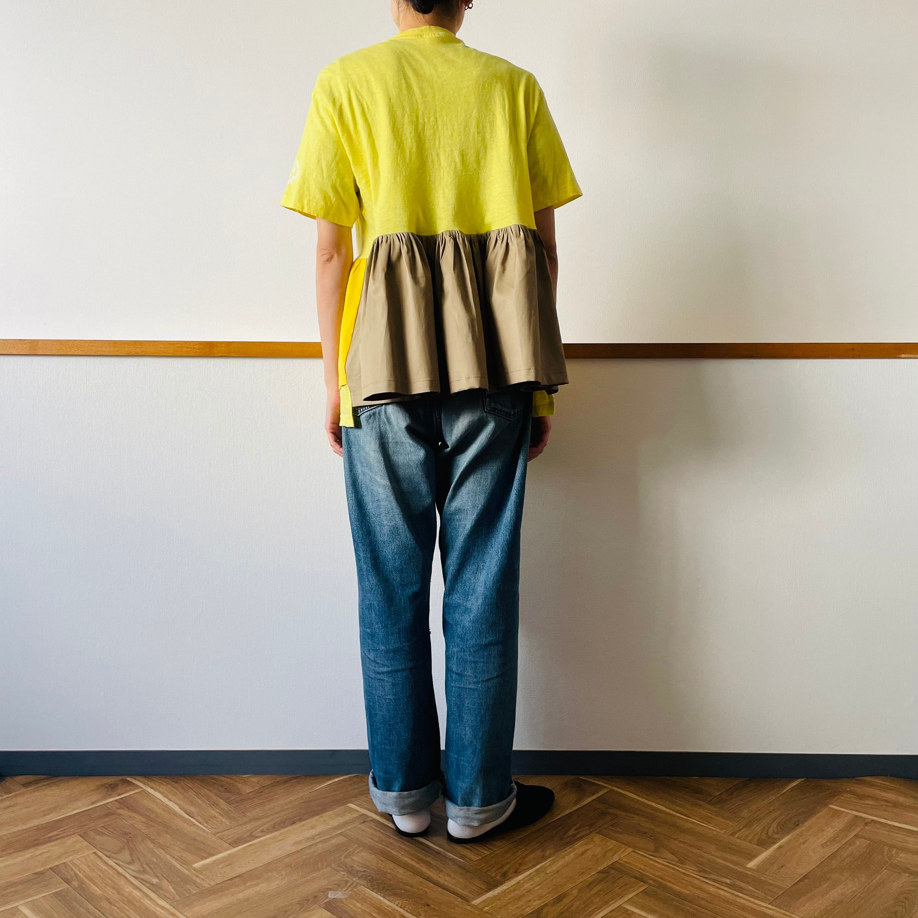 仕掛けのあるTシャツにリメイクを加えて可愛らしいトップスに。