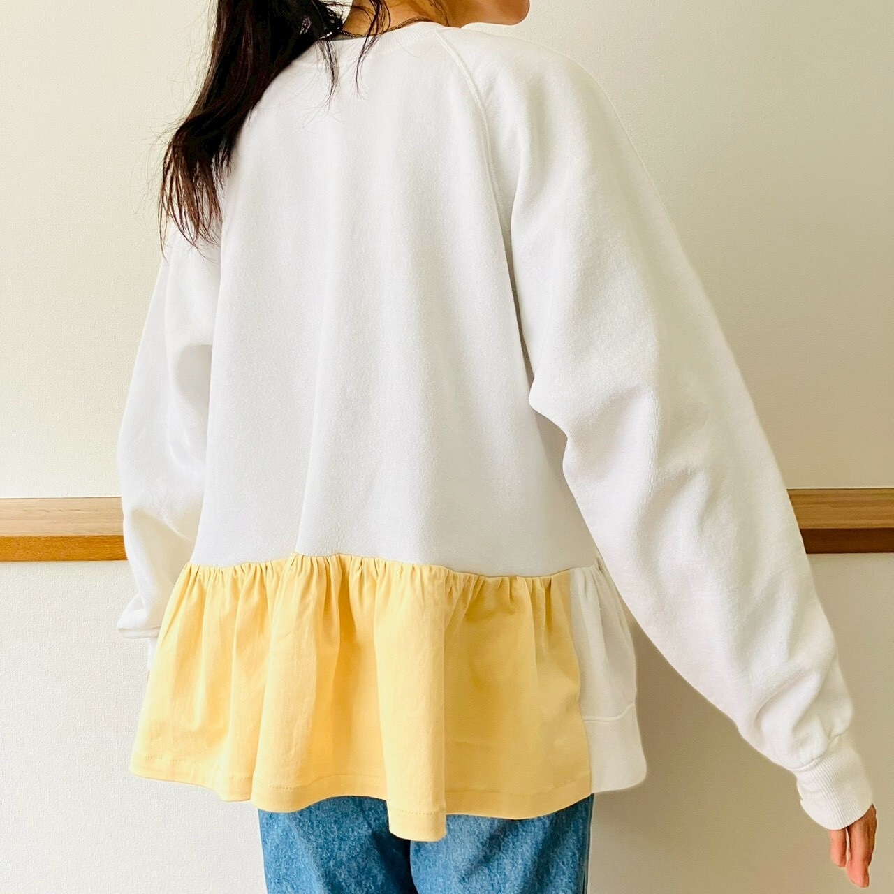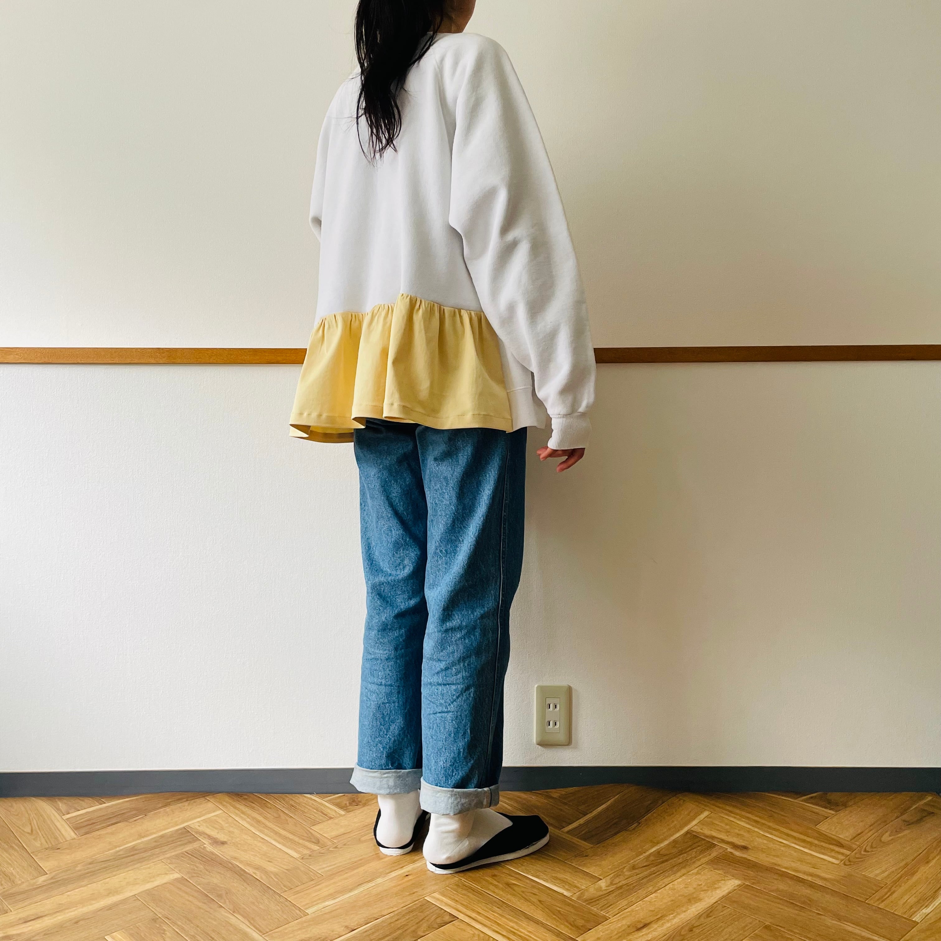 プリントと色を合わせた優しいイエローの生地をプラスしました。