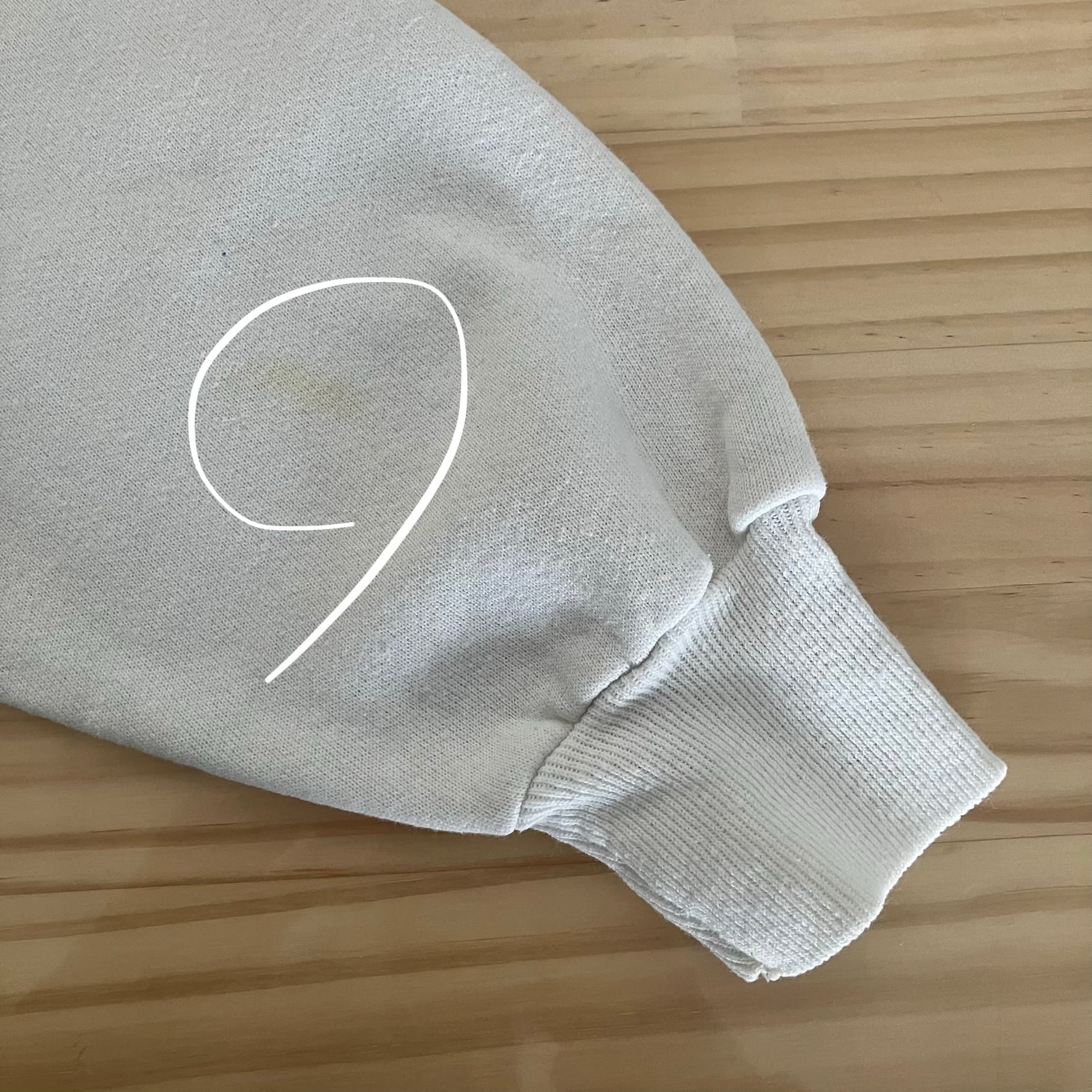 袖にシミあり。
