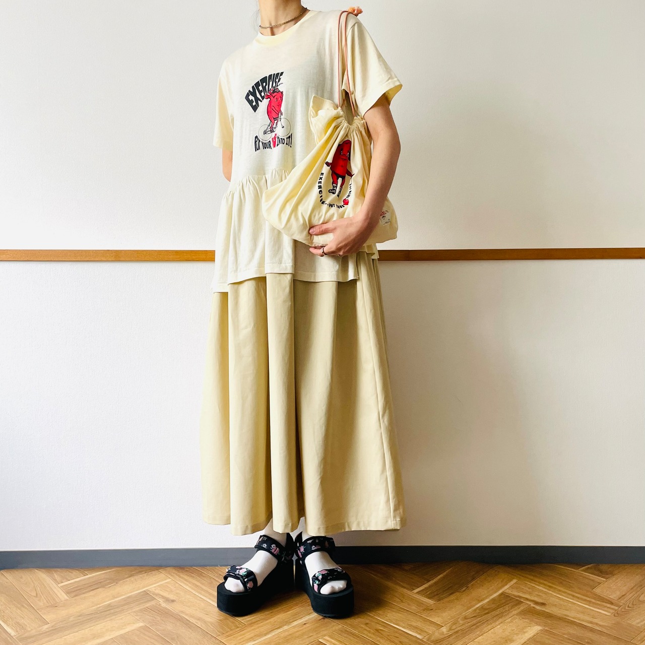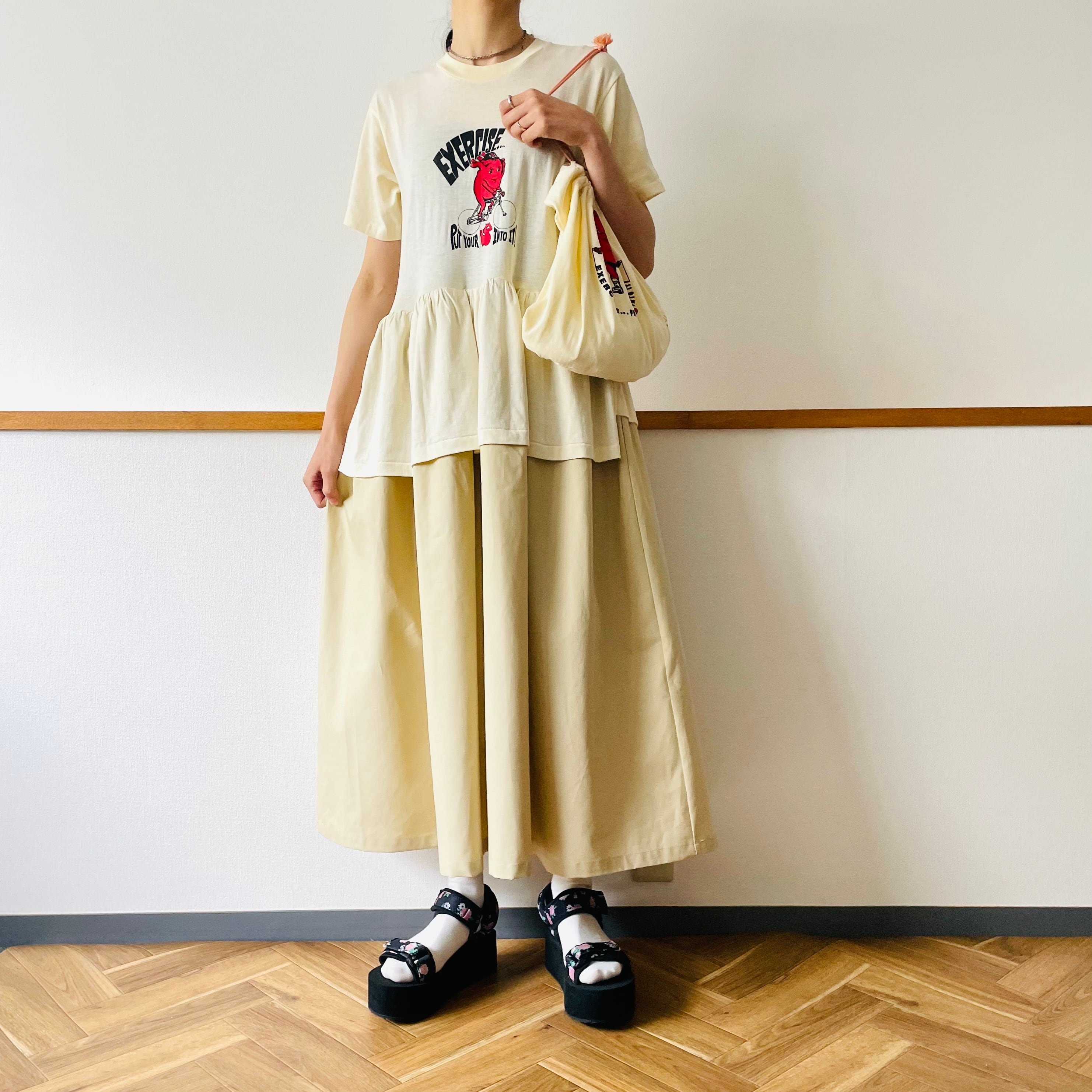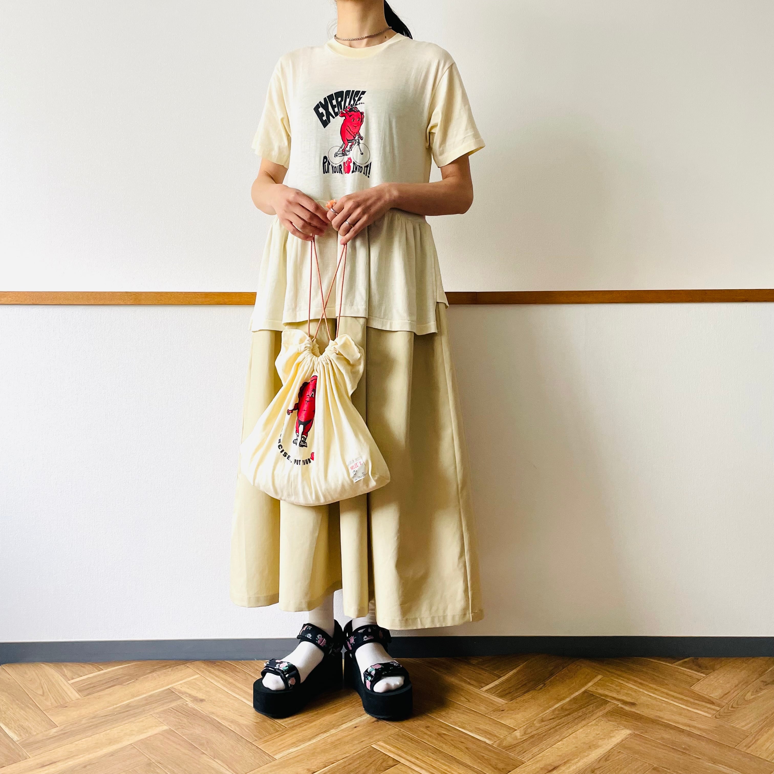 元は2枚のプリント違いのTシャツですが、ワンピースとバッグのセットにしました。