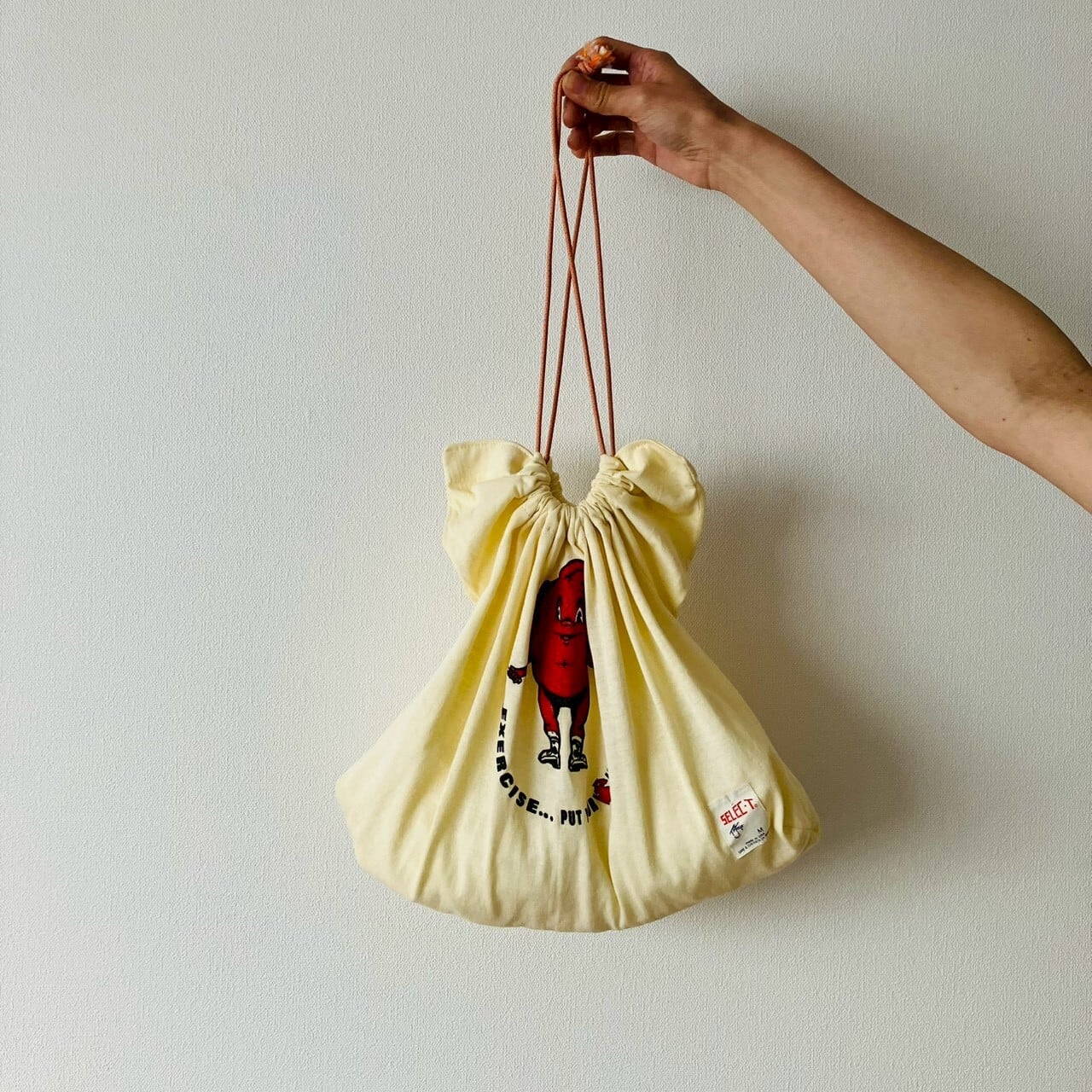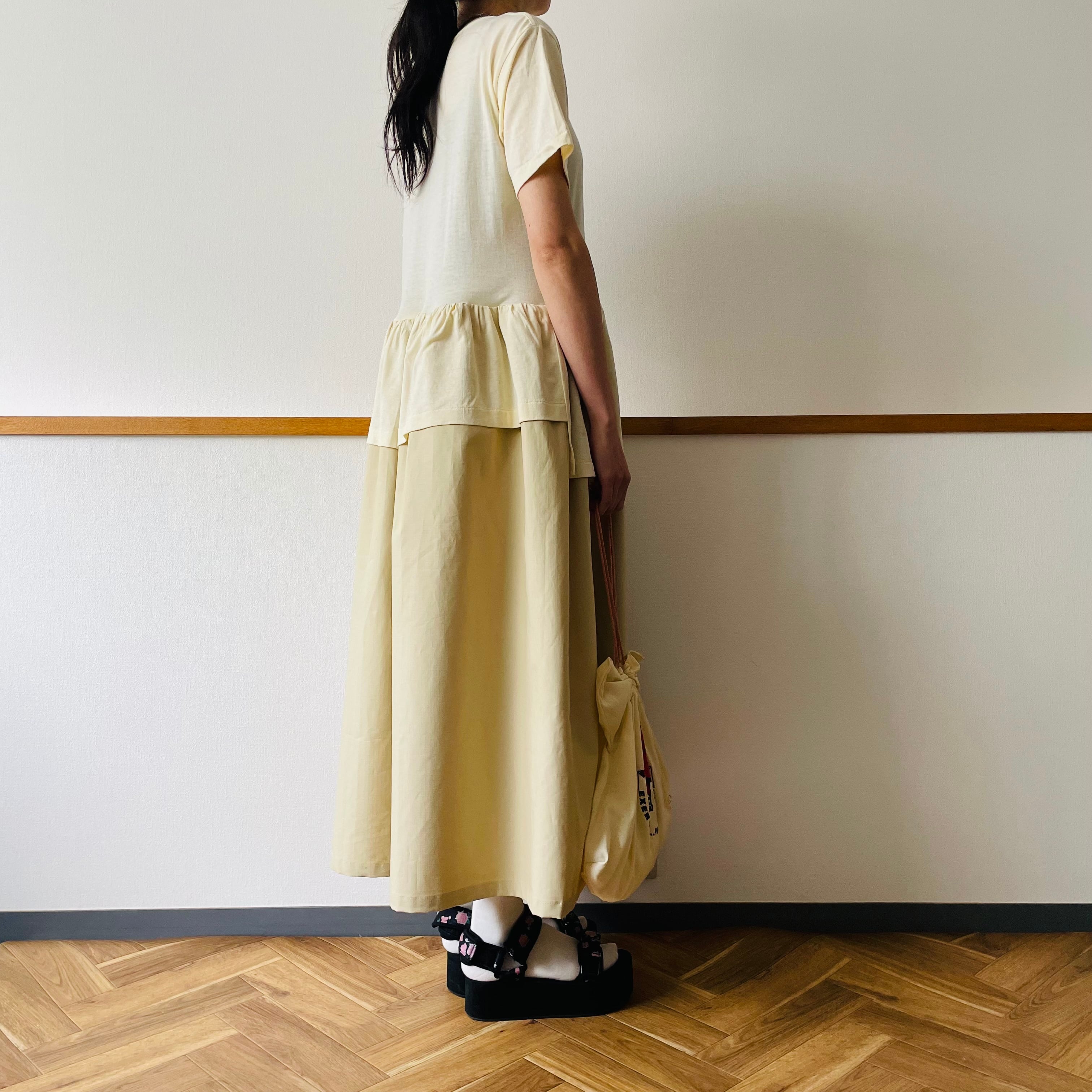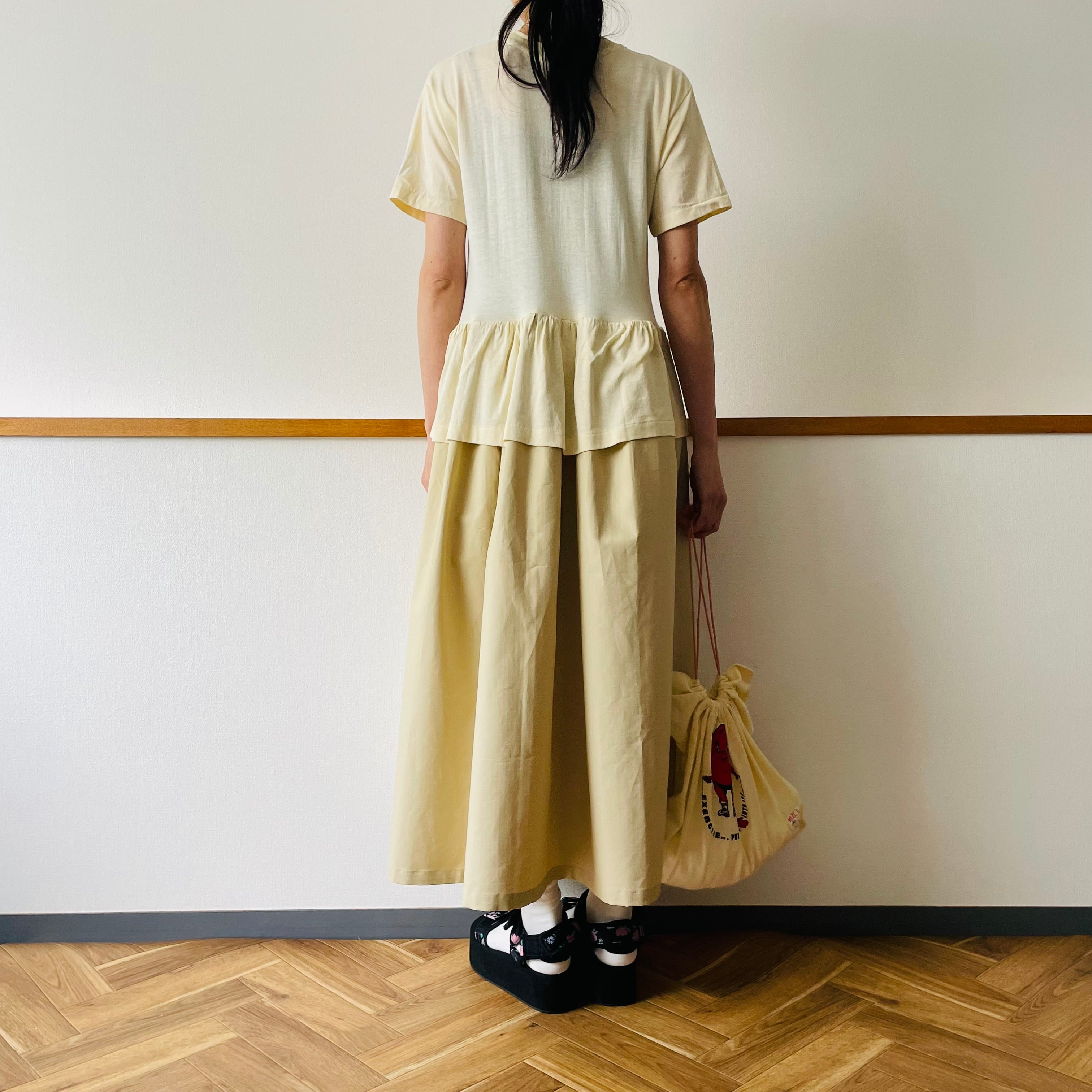 元は2枚のプリント違いのTシャツですが、ワンピースとバッグのセットにしました。