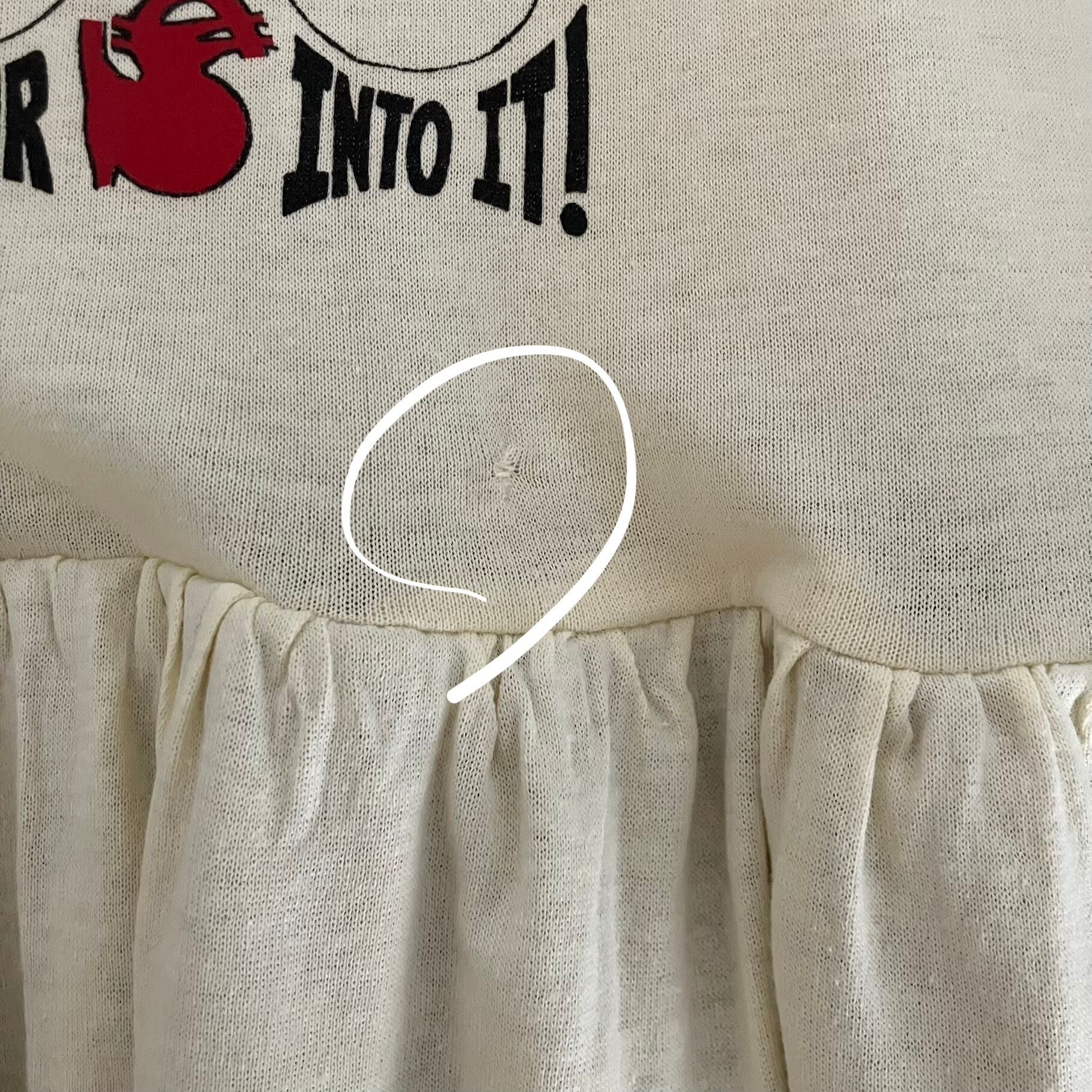 Originally made from two different printed T-shirts, this piece has been reconstructed into a dress and matching bag set.