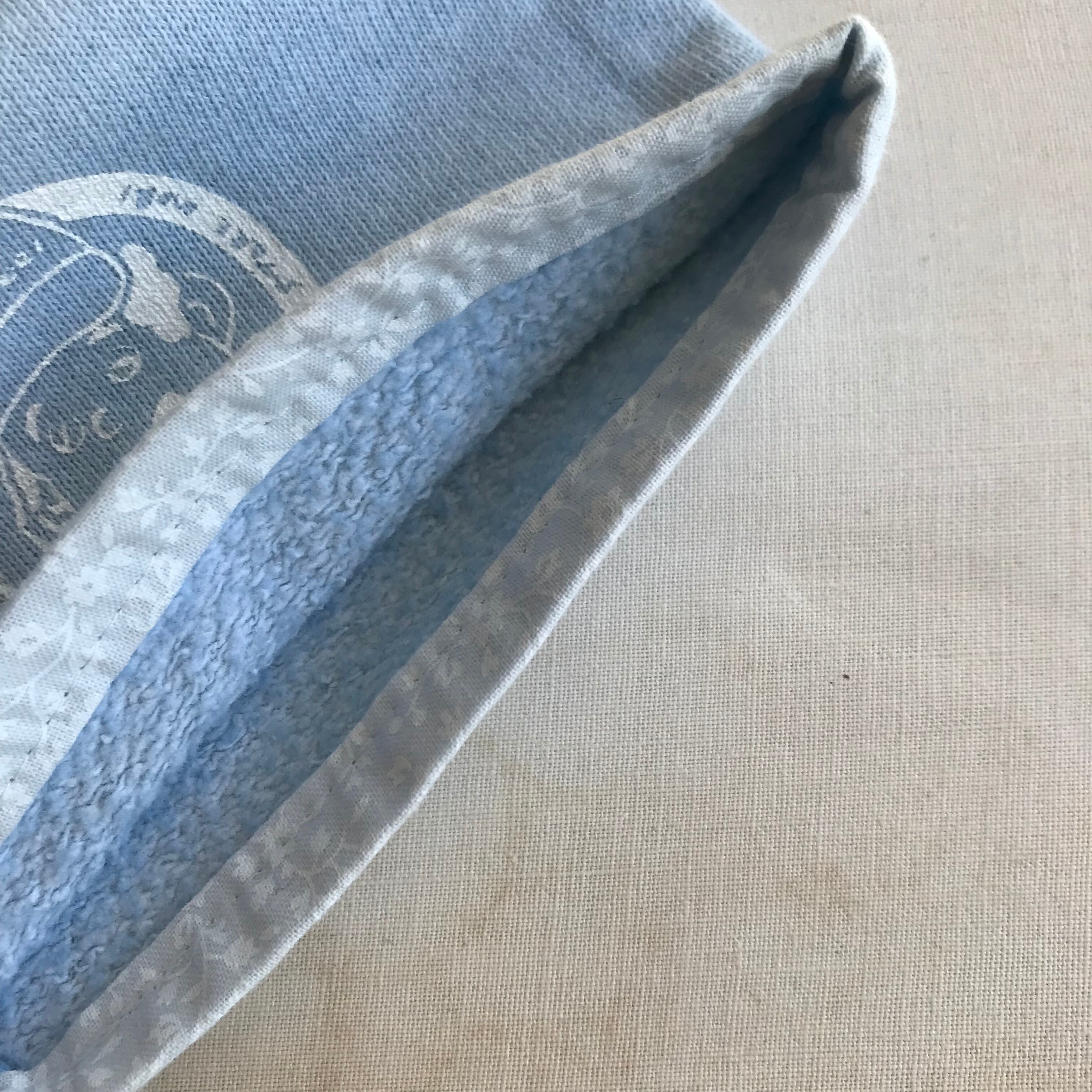 スウェットの袖部分のダメージが多かったので、7分丈でカットして縁取りしました。
