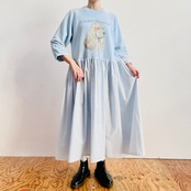 ハリのあるコットンのスカート生地は小花模様のプリントが入っています。