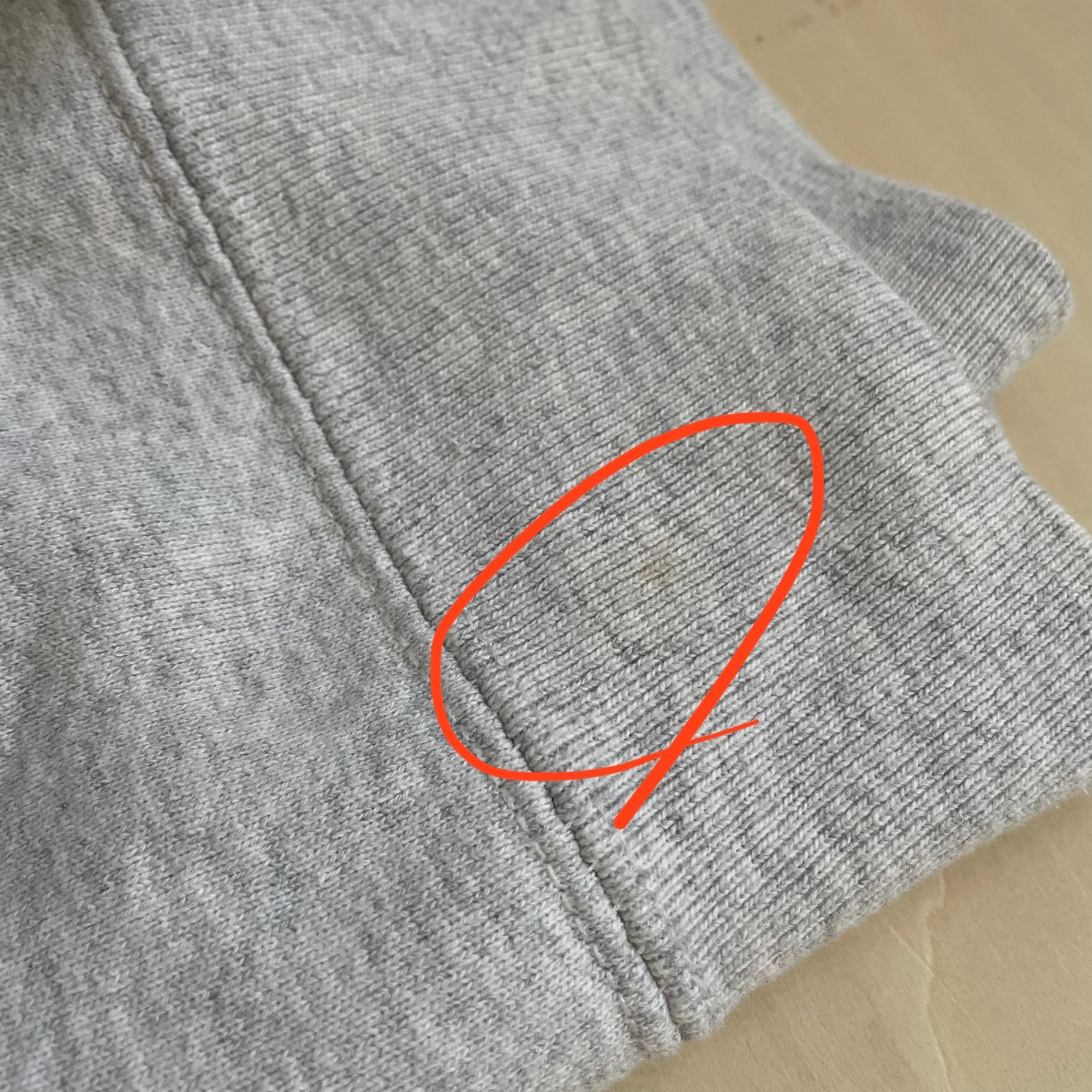 スウェットは袖口内側、Tシャツは背中首部分に