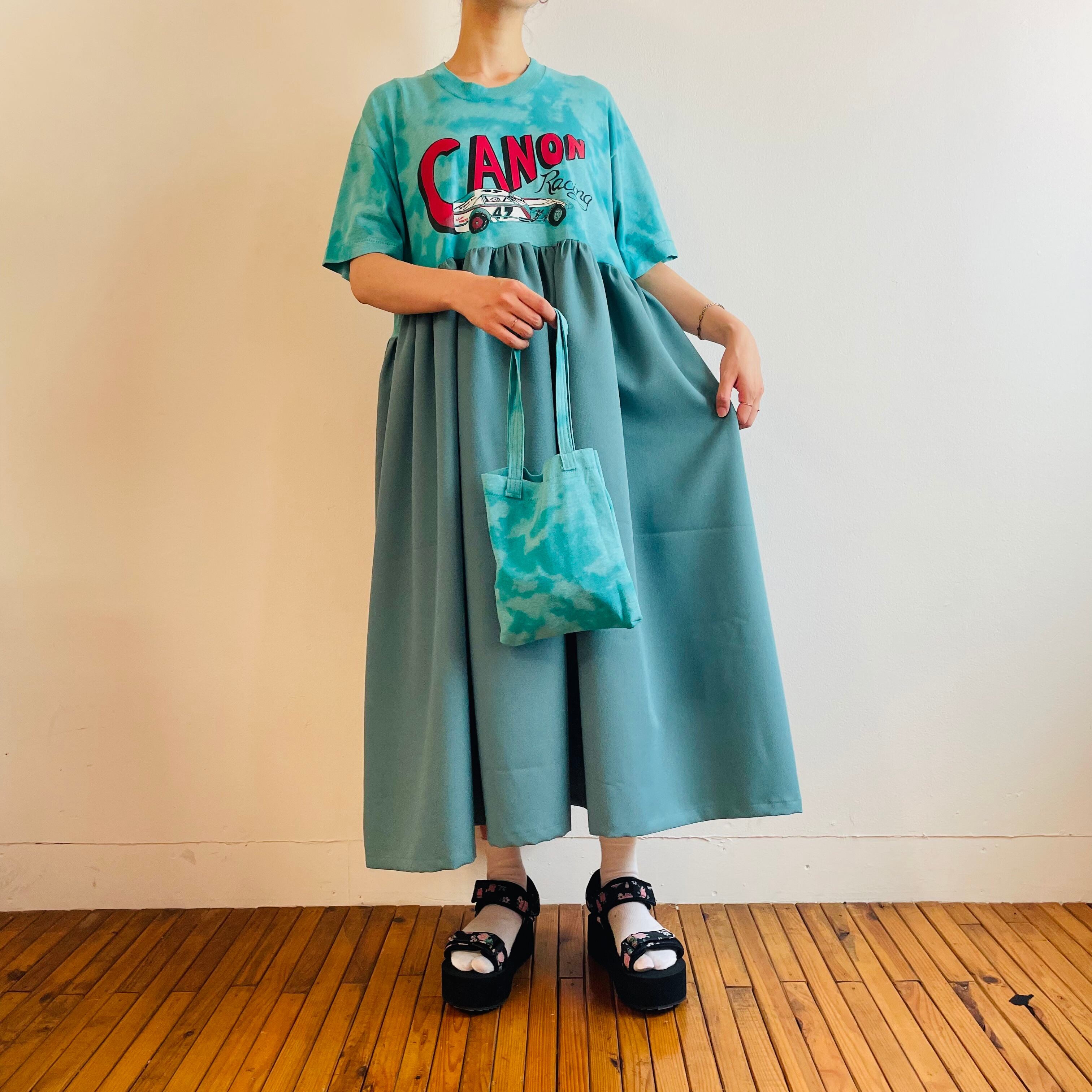 広巾のたっぷりギャザースカートでゆったりしたサイズ感です。